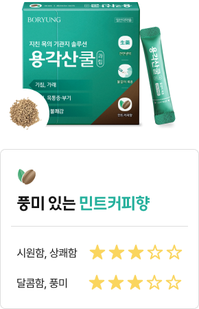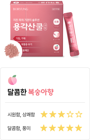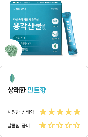 용각산의 미세분말 그대로를 과립화하여 복용 즉시 입안에서 녹아 미세분말화됩니다.